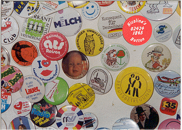 ACHTUNG für Ihr nächstes Sommerfest, Straßenfest, Pfarrfest, Schulfest, ...fest, ...fest, ...fest einfach eine Buttonmaschine mieten! Setzen Sie sich doch einfach mal mit uns in Verbindung ! _________________________________________________ Nicolina's Button Ihr Ideenlieferant Buttonherstellung und Buttonmaschinenverleih Seit 20 Jahren ist Nicolina's Button Ihr Ideenlieferant wenn es um qualitativ hochwertige Button geht ! Herzlichen Dank für Ihr Interesse an unseren Buttonmaschinen ! Kindergärten, Schulen, Bürgerinitiativen, Gemeinden, Vereine, Verbände, Messen, Betriebe, Parteien, Kirchen, Gewerkschaften, --- Tausende von begeisterten Konsumenten haben schon viel Spaß und Freude bei der Herstellung Ihrer eigenen, individuellen Button mit unseren Maschinen gehabt. Ob Sie nun einen außergewöhnlichen Kindergeburtstag gestalten möchten oder ein Erkennungszeichen oder ein Ein-Mann-Transparent herstellen wollen, mieten Sie einfach eine Nicolina's Buttonmaschine und produzieren Sie Ihren eigenen Werbeträger zu Hause ! Egal wie viele Button Sie benötigen, 10, 1000, oder 100000 Stück --- wir fertigen auch für Sie Ihren individuellen Button in vier verschiedenen Größen und in den von Ihnen gewünschten Farben ! Dabei ist neben der schnellen Lieferzeiten Qualität unser oberstes Gebot ! ______________________________________________________